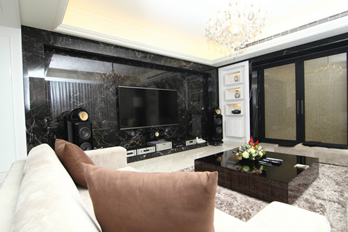 整體空間采用的是古典細節混搭現代元素的新古典風格 在一般的居家空間之中,如何安排音響系統能夠兼具聲音與視覺上的美感,同時又不妨礙到生活空間。此次是從事貿易的屋主一家五口平時住在一起,在家中也未見擁促,著實令人羨慕。屋主表示這整棟房子都是自建的,為了能夠有一個最完美舒適的家,建好之后光是裝潢就耗費了兩年的時光,全由他自己親自監看每個小地方,光是墻壁粉刷當初就重作了數次,對于家中一切細節要求相當高。