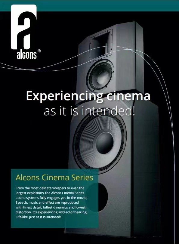 Alcons團隊把這一杰出成果應用到數字影院音響系統——C系列。C系列能提供HiFi聲質以及完美的清晰度,讓觀眾長時間觀看電影都不會出現聽覺疲勞。聲壓級覆蓋整個空間,大大提升遠離屏幕的觀眾聽覺上的享受,讓所有觀眾都能感受身臨其境的效果,讓觀眾與電影更親近。